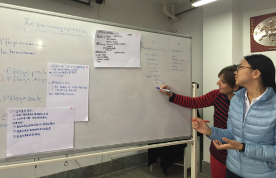 该项目以引进瑞士优质教育资源和先进养老护理教育理念,培养具有国际化视野的养老护理专业高级应用型人才,打造国内高水平、有特色的养老护理专业教学科研团队为宗旨,以瑞士老年护理高级进修课程为标准,以科学性、先进性、实用性为原则,设置理论授课与实践调研相结合的课程结构,并依据我国目前老年护理现状及学员的学习需求设定课程内容。培训过程采取中瑞双方合作、分主题、多环节的方式,充分利用双方优势教学资源,加强培训效果。项目启动后,学员经过一年的培训,通过与瑞士授课老师互动探讨,加深了对老年护理相关理论知识的学习,提升了理论在养老服务实践中的应用能力。