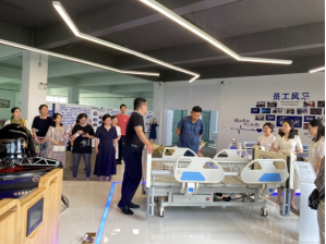 会前,与会人员参观了企业的研发实验室。正仁慧康智能科技有限责任公司主要负责人及研发团队向全体老师详细介绍了产品的研发理念,并展示了柔性翻身床、柔性转运床等多项迭代升级产品,多次参加各级各类创新创业比赛,获得良好成绩。截至2023年6月该公司累计获得专利技术50余项。通过实地参观学习使大家更加深入了解研发一线的设计理念和工作流程,更加理解智能康养未来的发展方向。