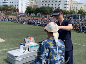 为普及应急救护知识,切实提高学生的自救互救能力,筑牢生命安全防线,9月10日,英国365集团公司官网韩晶老师带领南丁格尔志愿服务队在英国365集团公司官网东院操场开展2023级军训新生急救知识宣讲活动。