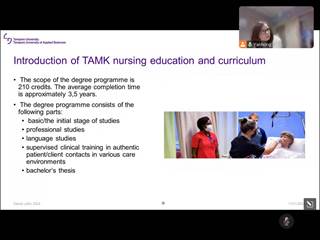 为确保活动的顺利召开并取得实质性成效,双方召开前期线上交流会,就师资培训的具体内容和日程进行了充分的交流。会上坦佩雷应用科技大学全球教育中心负责人汉努先生介绍了坦佩雷应用科技大学国际交流合作情况;社会服务和健康医疗学院院长派维女士等分享了护理与健康医疗本科、硕士学位人才培养,大数据精准分析的情景模拟教学等方面的经验;学院杨富国副院长介绍了学院发展历程、学科优势,分享了学院在专业建设、教学改革、人才培养、师资队伍建设等方面的工作;学院老年暨社区教研室主任刘婷就师资培训和创新研究方面的需求与坦佩雷应用科技大学相关负责人进行了深入的探讨。