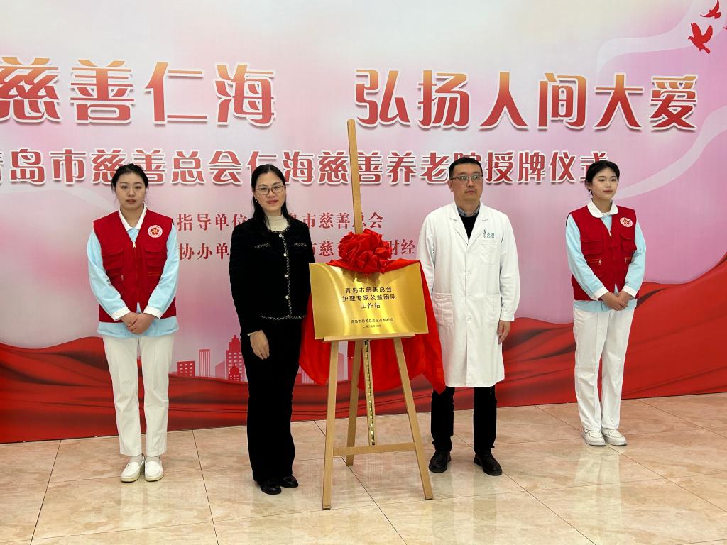 授牌仪式中,杨丽院长与青岛圣德嘉朗养老院院长周智亮共同为“青岛市慈善总会医疗专家公益团队工作站”授牌,杨丽院长表示,学院将继续发挥专业优势,推动老年护理服务的规范化和科学化,为更多困难群体提供高质量的护理支持。