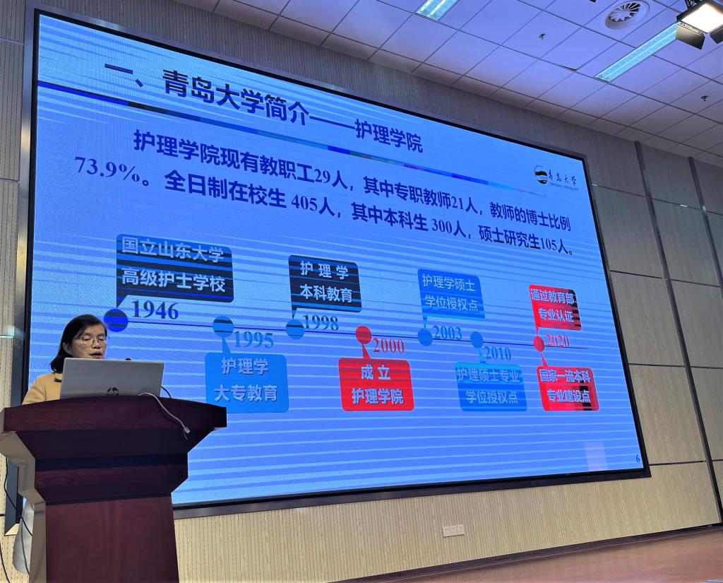 会上,王爱敏院长以“相约青大护理,成就美好未来”主题,从认识大学、认识自我入手,围绕学院简介、人才培养、师资力量、未来发展规划四个方面与同学们展开交流,勉励同学们要主动承担时代责任、回答中国之问、世界之问、人民之问、时代之问,在未来的学习生活中,发挥光荣传统,勇担时代使命,求实创新,筑基未来,通过自我重塑,实现新生,成为堪当民族复兴重任的时代新人。