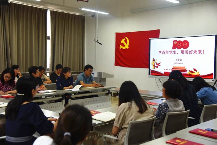 为深入学习贯彻习近平总书记系列重要讲话精神,学史明理、学史增信、学史崇德、学史力行,会上,教工党支部副书记张梅结合教学工作,为师生讲了“在立德树人中,守初心担使命”的微党课。