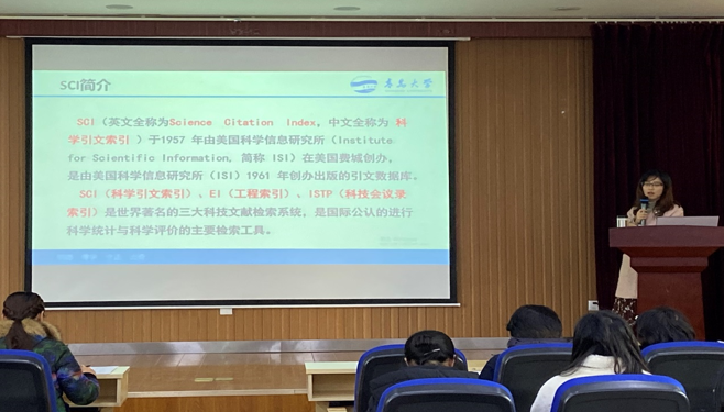 为增强英国365集团公司官网研究生学术热情,提高研究生撰写并发表SCI收录论文的信心, 2019年12月11日下午,英国365集团公司官网周云平老师在松山校区图书馆报告厅进行了题为《关于SCI写作投稿体会》的学术讲座。此次学术讲座由英国365集团公司官网杨丽老师主持,部分研究生导师和全体研究生进行了聆听学习。