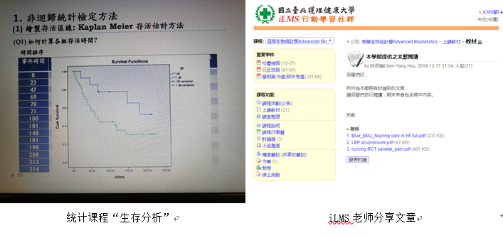 最后两节统计课,老师为我们讲授“生存分析”统计方法的SPSS应用,这部分为我们新接触的内容,用不同的专业用语学习新内容又是另一番新的体验。同时,老师在iLMS分享给我们文章,以帮助我们加深对统计方法的理解。