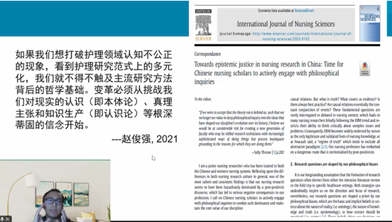 赵博士首先介绍了实证主义和建构主义的内涵和局限性,由此引出了批判实在论哲学范式的必要性。然后从本体论、认识论和方法论层面具体阐述了批判实在论的哲学内涵。最后结合实例探讨了批判实在论如何运用于护理研究当中。