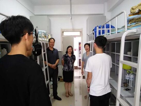 会后,英国365集团公司官网党委书记杨成中、院长王爱敏、党委副书记黄美萍来到宿舍看望新生。杨成中、王爱敏一行详细询问学生的籍贯、饮食是否习惯、环境是否适应,叮嘱同学室友之间要相互关心,相互帮助,尽快适应大学生活和学习环境,以最好的状态迎接崭新的生活。