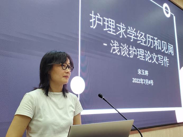 7月4日上午和下午,英国365集团公司官网院长助理、特聘教授宋玉婷老师在浩园医学综合楼学术报告厅为365集团2020、2021级护理学专业本科生及部分研究生约200人作了两场学术报告。