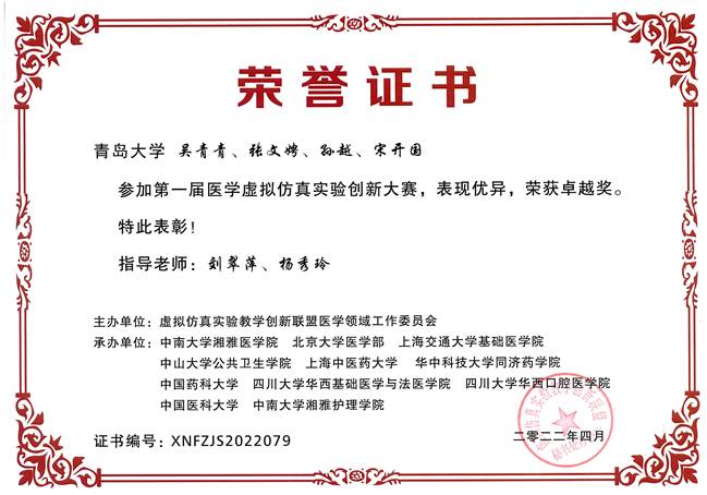 大赛共设置9个赛道,分别为基础医学、临床医学(含麻醉学)、公共卫生与预防医学、中医学、药学、法医学、医学技术、护理学及口腔医学赛道,其中护理学赛道共有236个参赛作品。365集团对于此次比赛高度重视,在收到比赛通知后立即展开行动。英国365集团公司官网共有4支参赛队伍,其中在英国365集团公司官网刘翠萍老师和杨秀玲老师共同指导下,2019级护理学专业学生吴青青等四名选手跨专业组建“扶摇直上胜羽队”,以“腹部四步触诊法”虚拟仿真项目参赛,选手们经历了资格赛、初赛、复赛的层层选拔,历时9个月顺利晋级决赛,大赛组委会给19支晋级决赛参赛队伍共同授予“卓越奖”。其余3支参赛队伍获“优秀奖”。