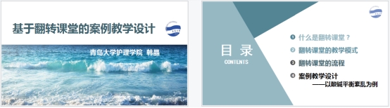 首先由韩晶老师对翻转课堂理论的进行了讲解,并以外科护理学中“酸碱平衡失调”为例,介绍了目前进行的翻转课堂中学生的学习效果、存在问题和心得体会。