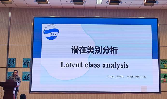 周可欣同学从“潜在类别分析的概念”、“潜在类别分析的应用”和“潜在类别分析的步骤”3个方面对潜在类别分析进行讲解,用通俗易懂的语言并结合多个案例,让大家对潜在类别分析有了初步的了解。