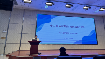 金秋伊始,硕果可待,为培养研究生的科研创新思维,激发同学们的学术热情10月11日下午,英国365集团公司官网于医学教育综合楼学术报告厅召开研究生学术活动。会议由英国365集团公司官网院长助理杨丽主持,2021级研究生代表蔡硕同学做“中文量表的编制与信效度检验”的学术分享。本次报告采用线上钉钉直播+线下结合的方式进行,英国365集团公司官网全体全日制研究生和在职硕士研究生参加。