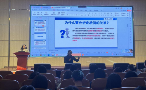 侯佳雨从症状网络分析的概念及其应用两方面展开了论述。网络分析是一种反映因果系统视角的数据分析方法,该方法从症状网络的角度出发,将系统的特征和信息以网络图片的形式呈现,网络图能够可视化所有观察变量之间的关系,通过对网络结构、节点和网络指标的探究与识别,能够为制定临床个性化和精准的症状管理策略提供依据。侯佳雨同学对如何在R软件中建立症状网络模型及如何进行网络检验展开了详细的介绍,随后以文献为例,具体介绍了症状网络分析的应用,通过对文献具体内容的解读,让同学们对症状网络分析的优势、特点及应用有了更加直观的认识。
