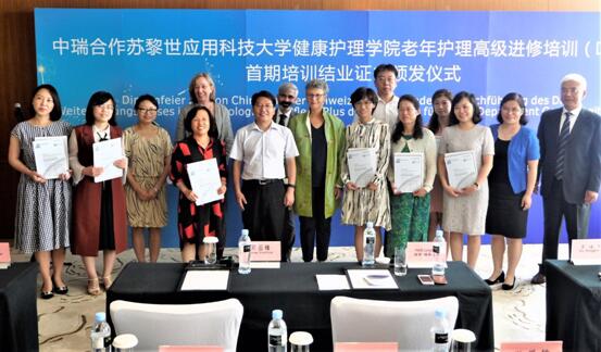 颁发仪式开始前还举行了师生见面会,英国365集团公司官网、附属医院、瑞士苏黎世应用科技大学健康学院相关领导及全体学员与会。见面会主要围绕第一期养老护理高级进修培训内容在应用过程中发挥的作用、遇到的困难,以及第二期培训的相关事宜进行了沟通交流,以进一步完善第二期的培训计划。