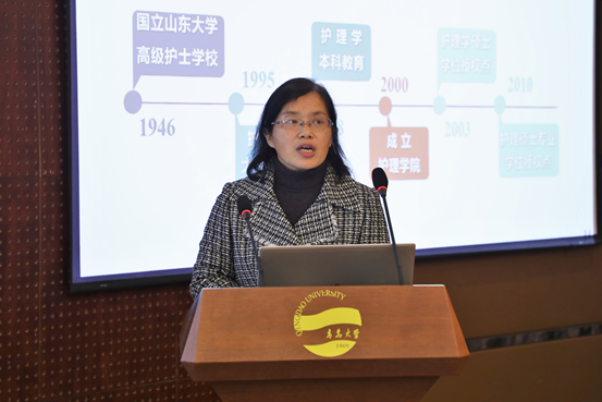 夏东伟首先代表学校向专家组的到来表示热烈欢迎和诚挚感谢。随后,他以《聚焦高质量发展 建设新时代高水平大学》为题进行汇报,他介绍了学校的办学情况、医学教育的发展情况和护理学专业建设情况。他表示,学校作为综合大学,要围绕人的发展来办学,而生命与健康是人类发展的基础和前提,所以学校首要建设生命与健康学科群,重点发展医学教育。学校将全力以赴支持医学专业建设与发展,围绕国家医药卫生事业发展需要,着力培养德智体美劳全面发展的卓越医学人才,立足青岛,面向山东,服务全国,力争为国家卫生与健康事业做出更大贡献。
