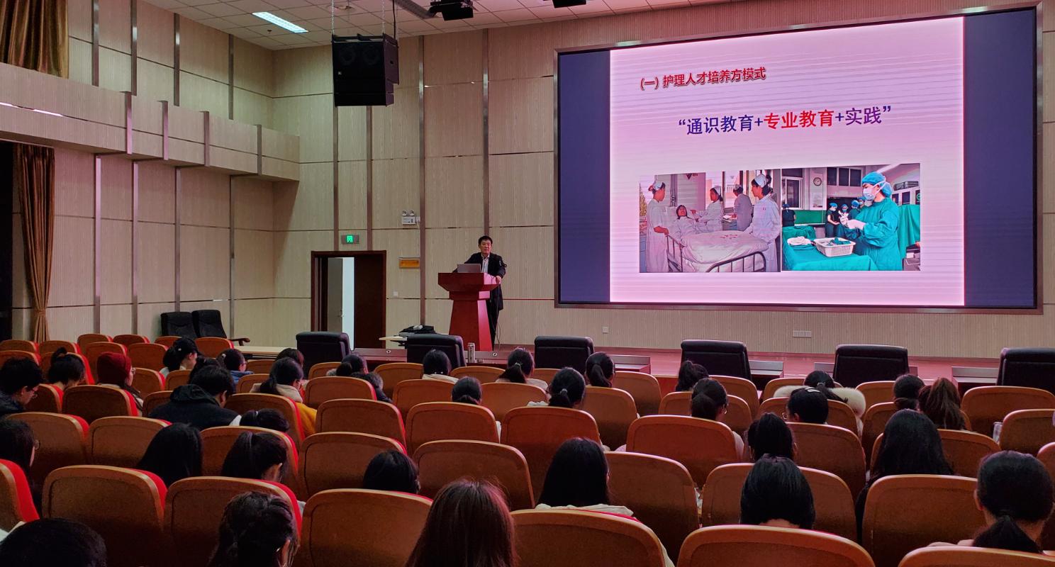副院长杨富国向同学们详细介绍了护理专业人才培养方案,结合考风考纪,宣读了《英国365集团公司官网学生违纪处分管理规定》,告诫学生要从思想上杜绝考试作弊,诚信做人、诚信考试。