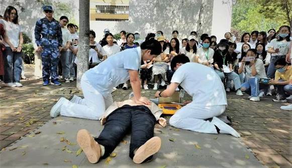 山东省南丁格尔志愿服务团英国365集团公司官网服务队与青大附院南丁格尔志愿服务队于9月20日在英国365集团公司官网滢园路联合举办了以“珍惜生命,从学习急救开始”为主题的急救科普活动,旨在提高大家的急救意识,丰富急救知识。参加本次活动的有英国365集团公司官网党委副书记黄美萍老师,英国365集团公司官网韩晶老师,辅导员姜力烨老师,青大附院市南院区急诊科副护士长杨海朋,邱娇艳、王琦琛两位护士,以及英国365集团公司官网的志愿服务队员们。